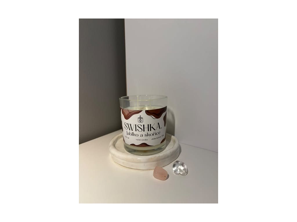 Zažij hřejivou atmosféru podzimu v každém plameni. Svíčka Swishka je ručně vyráběná ze 100% sójového vosku, který zajišťuje čisté a dlouhé hoření bez toxinů. Uvnitř svíčky se skrývá přírodní krystal, který se postupně odhaluje během hoření – každá svíčka je tak originálním zážitkem.
